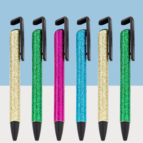 Pluma de soporte para teléfono móvil con purpurina metálica creativa al por mayor pluma retráctil de publicidad multifuncional de lujo de 1,0mm