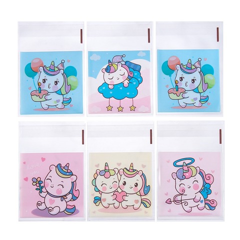 Bolsa de almacenamiento de joyería con diseño de unicornio colorido de dibujos animados, bolsa de Opp con patrón de animales pequeños transparente de plástico barato