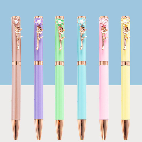 Bolígrafo de Metal de alta calidad nuevo Macaron Color 1,0 MM moda creativa flor colorida Clip perla bolígrafo